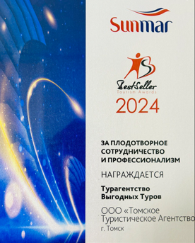 Премия “Starway" 2024 от туроператора Sunmar